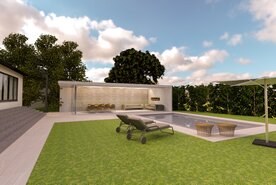 3D Visualisierungen Neubau Outdoor Bereich mit Pool