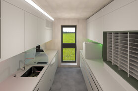 Zahnarztpraxis Sterilisationsraum im Dachgeschoss