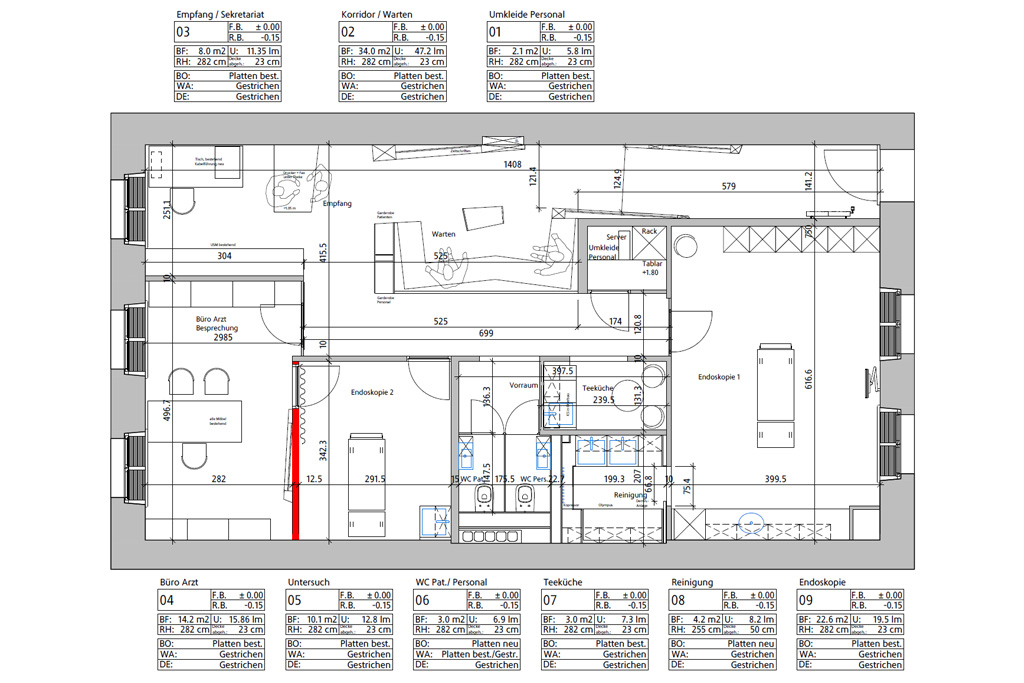 Dr. med. Beat Bigler erteilte uns den Auftrag eine bestehende Praxis für Gastroenterologie neu zu gestalten. Er wollte eine fröhliche uns angenehme Praxis wo er sich jeden Tag daran erfreuen kann. Im Weiteren wünschte er sich viel Gold und Gelb in der Praxis.