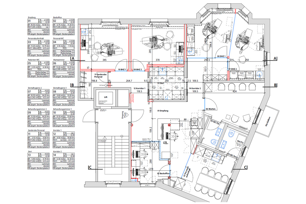 Mehr über den Umbau der Zahnarztpraxis erfahren. Journal mit Plänen, Bildlegenden und Erläuterungstexten hier downloaden